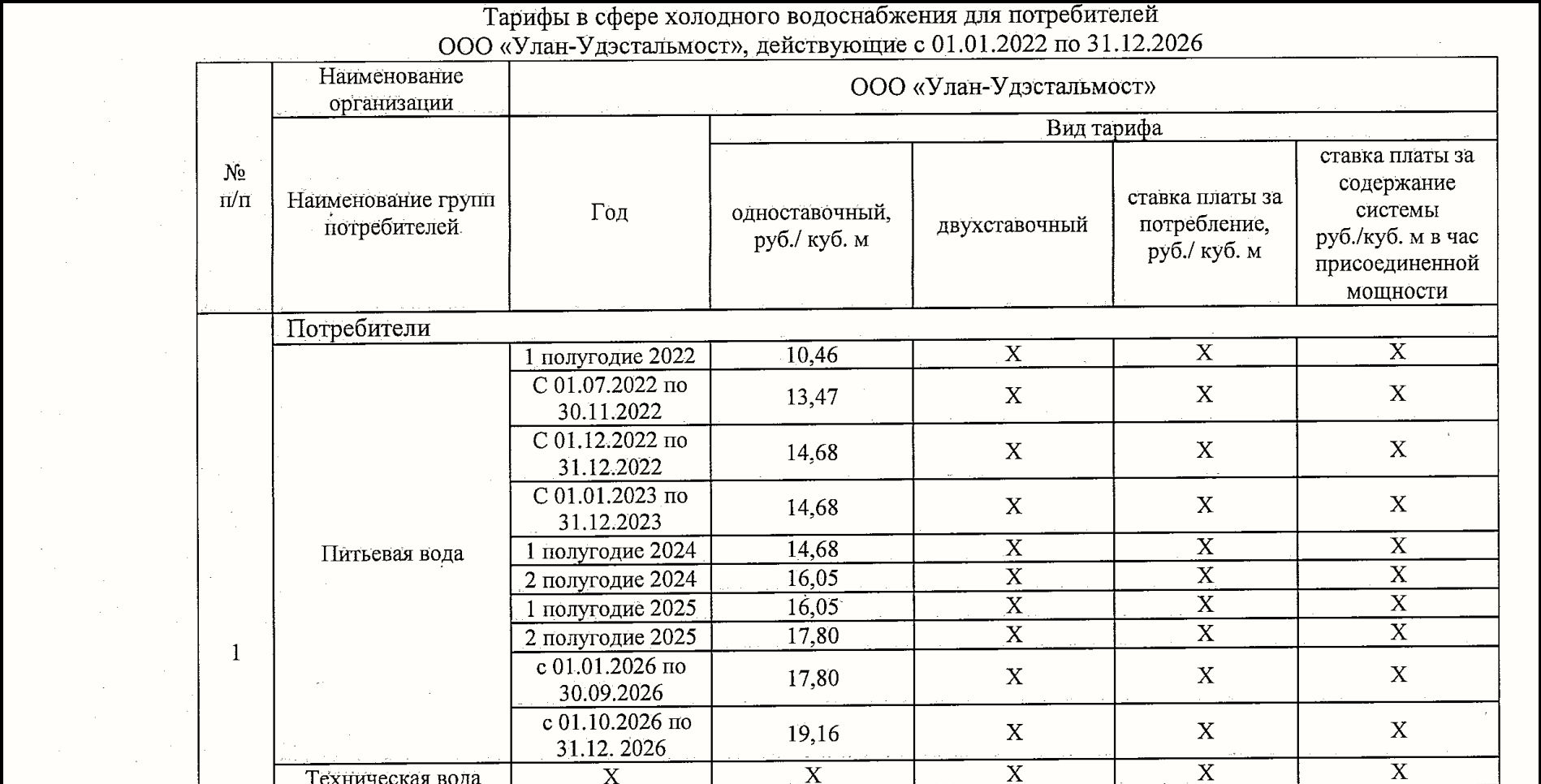 Чтобы окончательно понять, что в Бурятии правая рука власти не знает, кого душит левая, посмотрите на свежий документ от 11 декабря. Энергетики в судах требуют отрезать завод от электричества, в это же время республиканская служба по тарифам (РСТ) спокойно утверждает для «Улан-Удэстальмоста» новые тарифы на холодную воду аж до конца 2026 года.