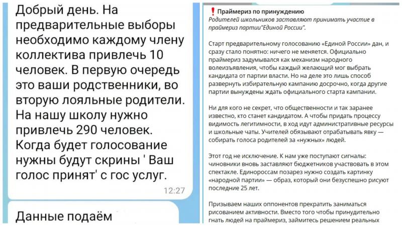 С 11 марта жителей Бурятии загоняют на предварительное голосование партии «Единая Россия». Родительские чаты уже гудят от гневных сообщений: от учителей и других работников бюджетной сферы жёстко требуют побудить к голосованию минимум десять человек, как сообщают соцсети БРО КПРФ. В ход идут родственники, лояльные соседи и просто знакомые. Главное условие — получить и сдать скриншот с портала государственных услуг об участии в голосовании.