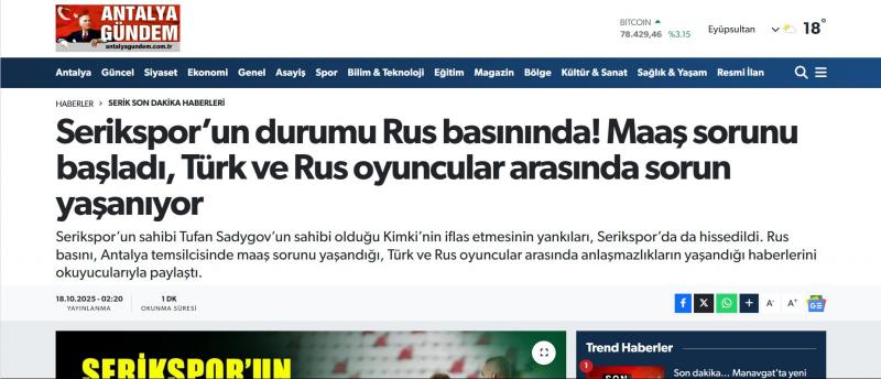 Только вот проблемы генподрядчика странным образом совпали с зарубежными инвестициями его теневого бенефициара. Самого Туфана Садыгова суд признал банкротом ещё в конце 2024 года с личным долгом в 23 миллиарда рублей. Позже бизнесмена отправили под домашний арест по делу о мошенничестве. Летом 2025 года турецкие издания сообщили о новой крупной покупке Садыгова. Он приобрёл 50% акций футбольного клуба «Серик Беледиеспор» за четыре миллиона евро. В команду сразу же наняли российского тренера Сергея Юрана и сына бизнесмена Илью Садыгова. В СМИ фигурант уголовного дела сделку категорически отрицает: «Я к этому клубу отношения не имею. Это всё сказки».