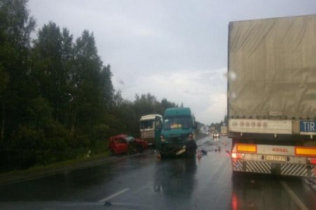 8 августа около 21:00 под Красноярском недалеко от Кемчуга на федеральной трассе столкнулись две фуры, Honda Fit и автобус. В результате аварии погиб водитель легкового автомобиля.