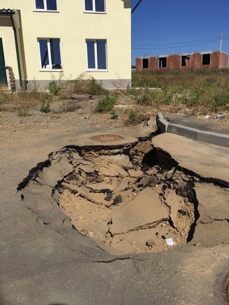 В ЖК «Парковый» на 15-м километре Байкальского тракта провалился асфальт. По словам застройщика, дома возводились в поле. Поэтому, возможно, причиной провалов является нестабильный грунт. Любопытен тот факт, что асфальт обвалился между индивидуальными жилыми домами.