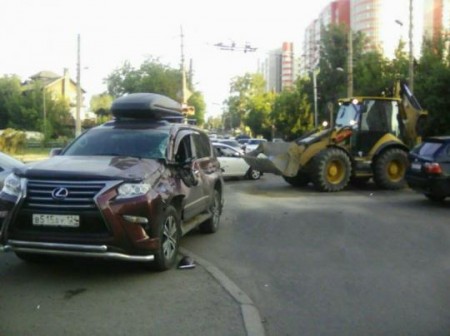 5 июля в Красноярске на перекрестке улиц Копылова и Киренского бульдозер ковшом зацепил бок внедорожник Lexus. Бульдозер поворачивал с улицы Копылова, в это время с обратной стороны дороги ехал внедорожник. Водитель Lexus не успел затормозить. Спец техника протаранила бок автомобиля.