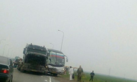 6 июля в 15:30 в Красноярске на трассе М-54 автомобиль Hyundai Santa Fe врезался в автобус с 40 пассажирами. Пострадавших нет. Полиция выясняет все обстоятельства трагедии. Источник фото: rusdialog.