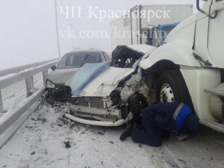 На «Путинском» мосту 17 ноября произошли сразу три аварии. Пострадавших двое. На 29 километре автодороги «Глубокий обход Красноярска» столкнулись три машины. В результате ДТП получал травмы один из водителей. На 30 километре этой же трассы столкнулись еще семь авто (в том числе и большегрузных).