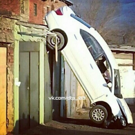 Курьезная автоавария произошла в половину шестого вечера 11 апреля в гаражном кооперативе на улице Гарнаева в Улан-Удэ. Местный житель, будучи вусмерть пьяным, сел в свою «Тойоту Премио» и рухнул на ней со второго яруса гаражей.