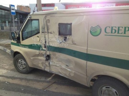 ДТП с участием автобуса и инкассаторской машины произошло 16 апреля в Красноярске. По предварительной информации, автомобиль инкассаторов стоял в правом ряду перед «зеброй», а междугородний автобус двигался в левом ряду. Машина, которая ехала перед автобусом, неожиданно затормозила.