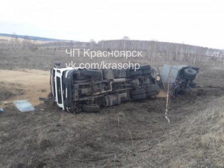 Авария с переворотом произошла вечером 18 апреля на автодороге возле «Красноярского Загорья». Об этом сообщают очевидцы ДТП в социальных сетях. Фура с песком съехала с трассы в кювет и опрокинулась. Водитель утверждает, что авария произошла из-за лихача, который подрезал грузовик и скрылся.