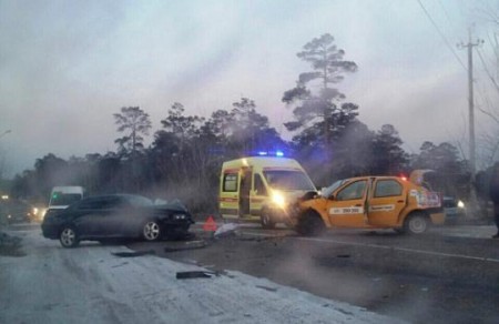 Лобовое ДТП произошло около восьми часов утра 17 февраля в Улан-Удэ. Возле кладбища в микрорайоне Тальцы друг в друга влетели «Тойота Чайзер» и «Рено Логан» из службы такси «Максим». В результате столкновения пострадали водитель и пассажир «Рено».