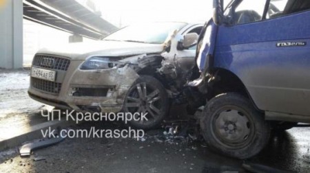 Серьезное ДТП произошло на развязке четвертого моста через Енисей в Красноярске. ГИБДД сообщает, что на правом берегу Красноярска, возле спуска с нового моста на Свердловскую, «ГАЗель» влетела в легковой автомобиль «Ауди».
