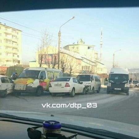 Крупное ДТП с участием четырех машин произошло около 10 утра 28 декабря на улице Бабушкина в Улан-Удэ. Друг с другом «поцеловались» пассажирская Газель, микроавтобус «Nissan Vanette», «Toyota Corolla» и еще одна легковушка. Газель врезалась в иномарку, от чего ее откинуло на обочину.
