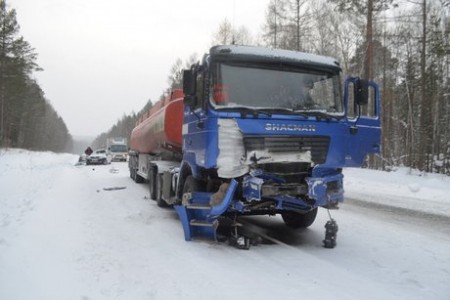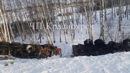 Крупное ДТП произошло днем 4 января на Енисейском тракте в Емельяновском районе. Один лесовоз тащил другой на буксире. Поворачивая под горку в 26 километрах от краевого центра, водитель первого грузовика потерял управление из-за скользкой дороги.