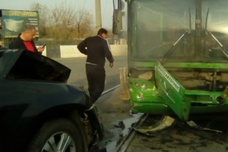 ДТП произошло в четыре часа дня 14 октября. Водитель за рулем «Мерседеса» ехал по улице Маяковского на мост и не уступил дорогу автобусу № 6, который поворачивал с моста. В итоге автомобили врезались. Свидетели аварии утверждают, что из-за столкновения автобус загорелся.