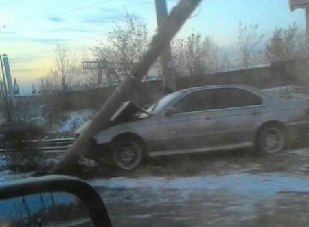 Авария произошла около пяти часов утра 18 октября в Железнодорожном районе на улице Ботаническая. 30-летний водитель за рулем автомобиля «BMW» уснул и протаранил электроопору на трамвайных путях. В салоне также находилась пассажирка.
