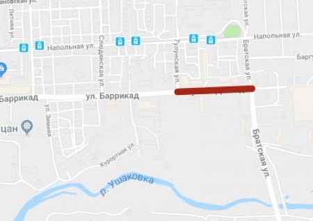 На участке улицы Баррикад от Братской до Тулунской будут делать ремонт тепловых сетей. С 9 по 23 ноября проезд по этому участку будет перекрыт. Новости Прибайкалья - в Вайбере. Только эксклюзив! Подписывайтесь! Читайте нас в Одноклассниках! Читайте нас в Телеграме!