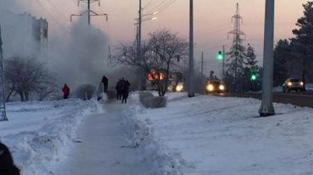Утром 13 ноября прорвало трубу с горячей водой на перекрестке Карла Либкнехта и Советской. На месте аварии затруднено движение. Инспекторы ГИБДД направляют транспорт в объезд по Трилиссера. С дороги убирают снежную кашу и посыпают песком.