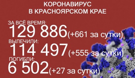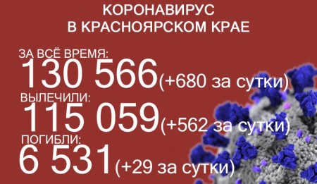 30 октября в Красноярском крае снова обновился антирекорд по суточному приросту заболевших коронавирусом – 680. Общее число заболевших достигло 130 566. За всё время выздоровело 115 059 человек, в том числе 562 за последние сутки. Количество погибших достигло 6531.