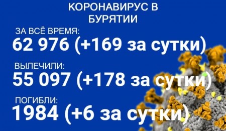По данным на 30 октября, еще 169 человек в Бурятии заболели COVID-19. Также за сутки 178 пациентов выздоровели, шесть человек скончались. Об этом сообщает пресс-служба регионального Роспотребнадзора.