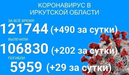 По данным оперштаба Иркутской области на 30 октября, в регионе официально зарегистрировано 121744 подтверждённых тестами ПЦР случаев заражения коронавирусом. За сутки было выявлено 490 новых случаев. 4816 человек находится в больницах.
