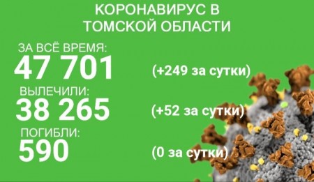 За сутки с 29 по 30 октября в Томской области коронавирус зарегистрировали у 249 человек. С начала эпидемии заболевание выявлено уже у 47 701 жителя региона. В минувшие сутки выздоровели 52 пациента. За все время от коронавируса излечились 38 265 человек.