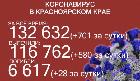 2 ноября число ковидных смертей в Красноярском крае достигло 6617. За последние сутки скончались 28 больных коронавирусом. За сутки выявили ещё 701 заболевшего, это новый антирекорд по суточному приросту. За всё время пандемии COVID-19 выявили у 132 632 жителей края.