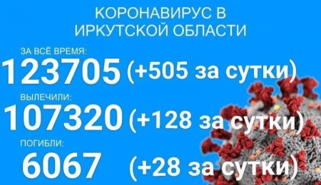 По данным оперштаба Иркутской области на 3 ноября, в регионе официально зарегистрировано 123705 подтверждённых тестами ПЦР случая заболевания коронавирусом. За сутки было выявлено 505 новых случаев. 5023 пациента, количество госпитализированных за сутки уменьшилось на 13 человек.