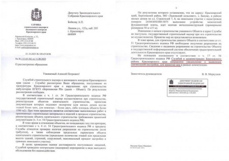 В селе Зыково возник скандал вокруг строительства новой амбулатории. Проверка краевого Стройнадзора показала, что подрядчик ведёт работы без разрешения на строительство и без уведомления контролирующих органов. Таким образом, объект не находится под государственным надзором.