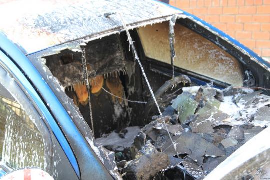 Сообщение о возгорании поступило в 2:13. К моменту приезда пожарных автомобиль был весь охвачен огнем. Его удалось потушить к 2:20, однако салон машины и моторный отсек успели безнадежно выгореть.