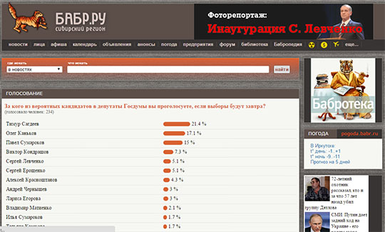 8 февраля портал Бабр открыл голосование по вероятным кандидатам в Госдуму созыва 2016 года.