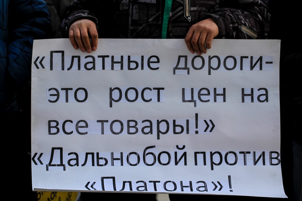 Заодно КПРФ выдвинул общие требования прекратить рост цен на товары первой необходимости. Как это связано с с системой "Платон", организаторы митинга не пояснили.