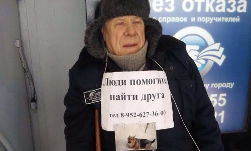 В феврале интернет облетела история о пенсионере из Братска, который каждый день приходил на рыночную площадь с маленьким самодельным плакатом "Люди, помогите найти друга" и фотографией овчарки.