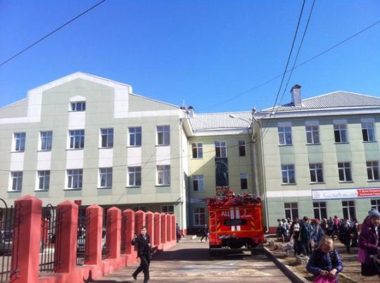 В раздевалке спортивного зала вспыхнул портфель одного из учеников. Учитель физкультуры незамедлительно нажал кнопку пожарной сигнализации и принялся эвакуировать детей из задымленного помещения. Дым стремительно распространялся по кабинетам и коридорам учебного заведения.