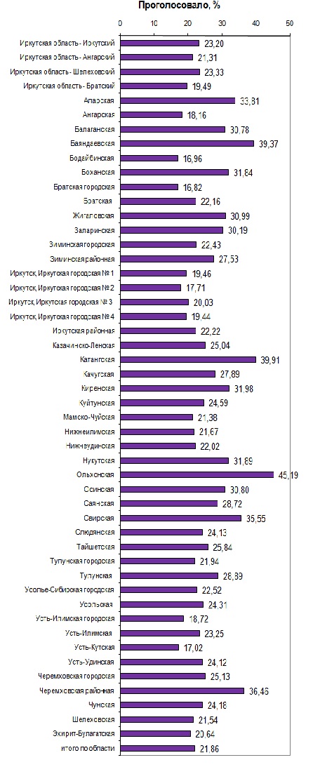 Иркутская область - регион с очень низкой явкой. По состоянию на 15 дня в Прибайкалье самая низкая явка из регионов, по которым уже есть статистика.