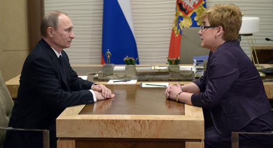 Губернатор Забайкальского края Наталья Жданова на встрече с президентом России. Фото: sputniknews.cn