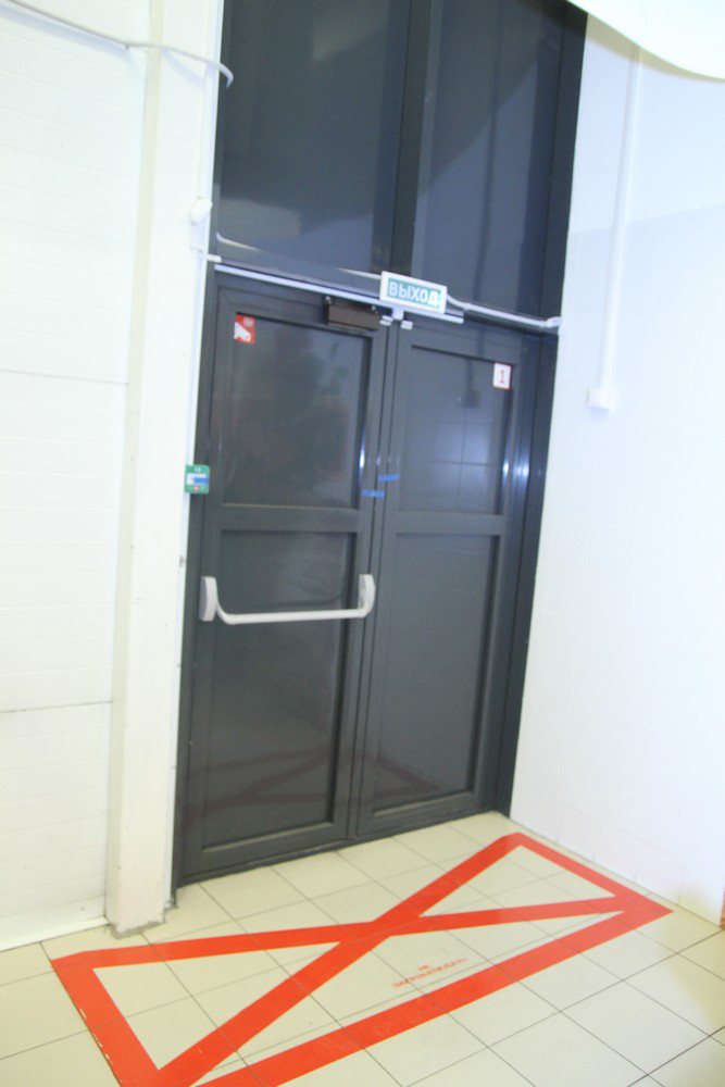 На удивление все эвакуационные выходы открыты, но даже непрофессиональным взглядом видно, что на всех дверях установлены магнитные замки, которые кто-то открыл только сейчас. Как признаются посетители, в обычные дни эти выходы закрыты.