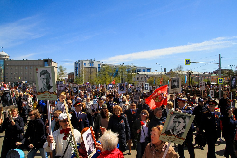65 тысяч иркутян вышли на улицу с портретами своих родственников-ветеранов в руках.