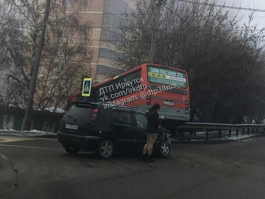 В Иркутске автобус №7 вылетел в кювет из-за столкновения с авто