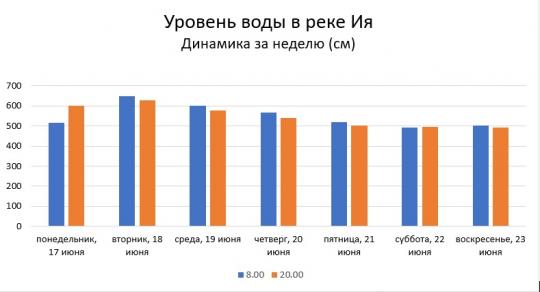 В городе все спокойно. Мэрия сообщает: «В результате сильных дождей продолжается формирование дождевого паводка, ожидается резкое повышение уровня воды на реке Ия до отметки 900-1000 см при критической 700 см».