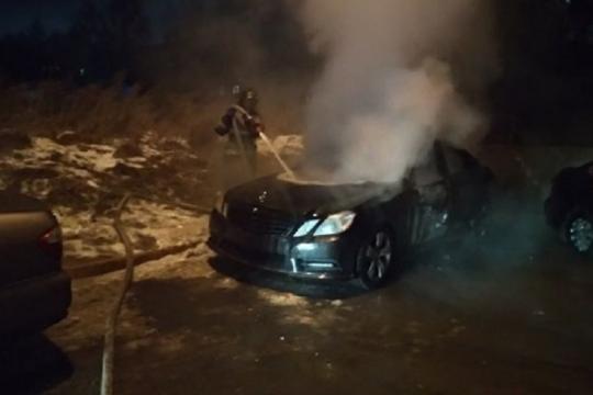 Mercedes-Benz сгорел ночью в Иркутске
