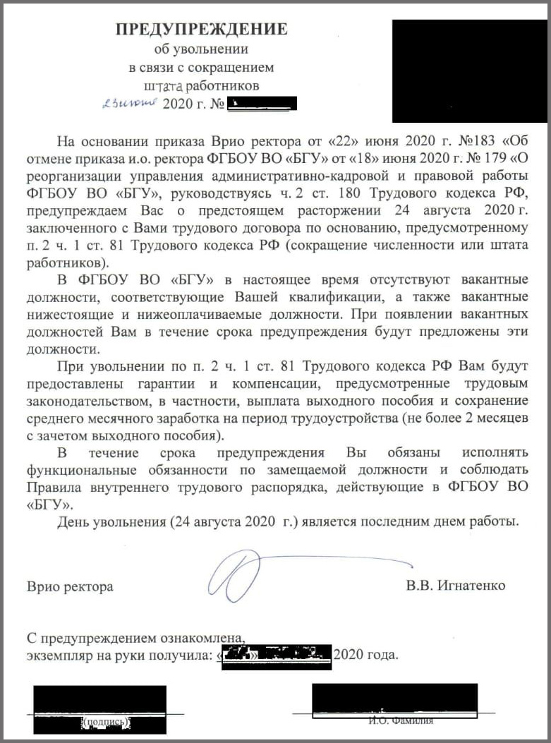 Не успел Игнатенко вступить в должность, как начались массовые увольнения сотрудников. Игнатенко, у которого отсутствует опыт руководства даже факультетом, не говоря уже о вузе, с элегантностью слона в посудной лавке начал крушить все, что создавалось десятилетиями до него.
