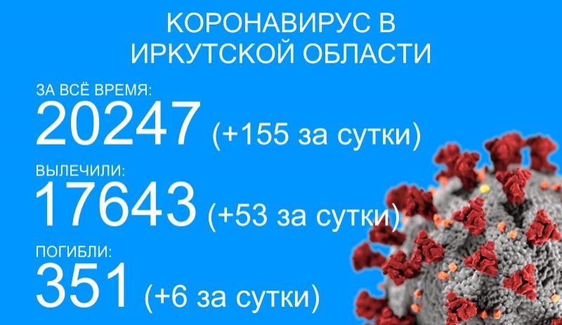 В Прибайкалье COVID-19 подтверждён ещё у 155 человек, шестеро умерли