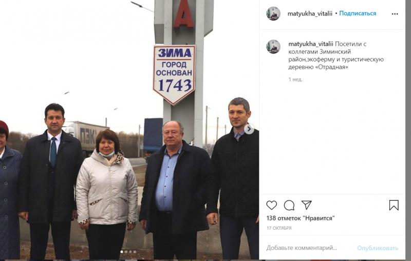Мэр Зиминского района Наталья Никитина тоже не решается общаться с гражданами накоротке, а нашлась в приспущенной маске на странице мэра Усольского района Виталия Матюхи.