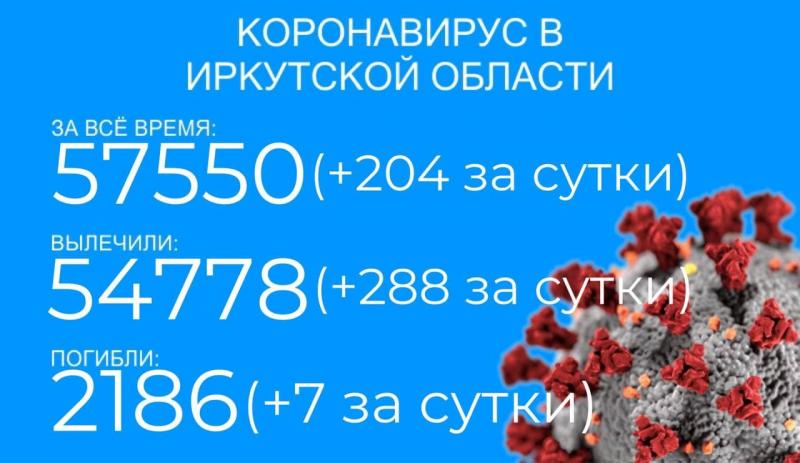 Коронавирус в Прибайкалье: 204 заболело, 288 выздоровело, 7 умерло