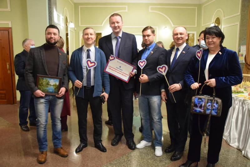 Однопартийцев Некипелова Георгия Любенкова, Дмитрия Тютрина и Олега Попова, а также отличающегося от них красным галстуком председателя молодежного парламента области Ивана Комелькова, видимо, фотографировал с высоты роста депутат Андрей Андреев.