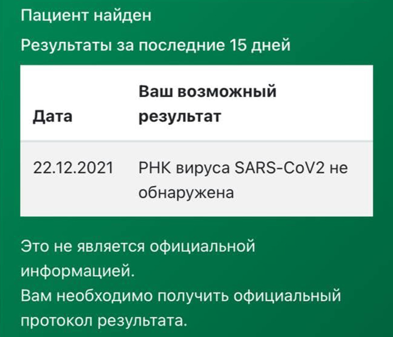 Минуточку. Это официальный сервис Минздрава по информированию населения. Как понимать фразу "возможный результат"? Это что, игра в рулетку? И что, все-таки нужно идти "ногами" за бумажным протоколом?