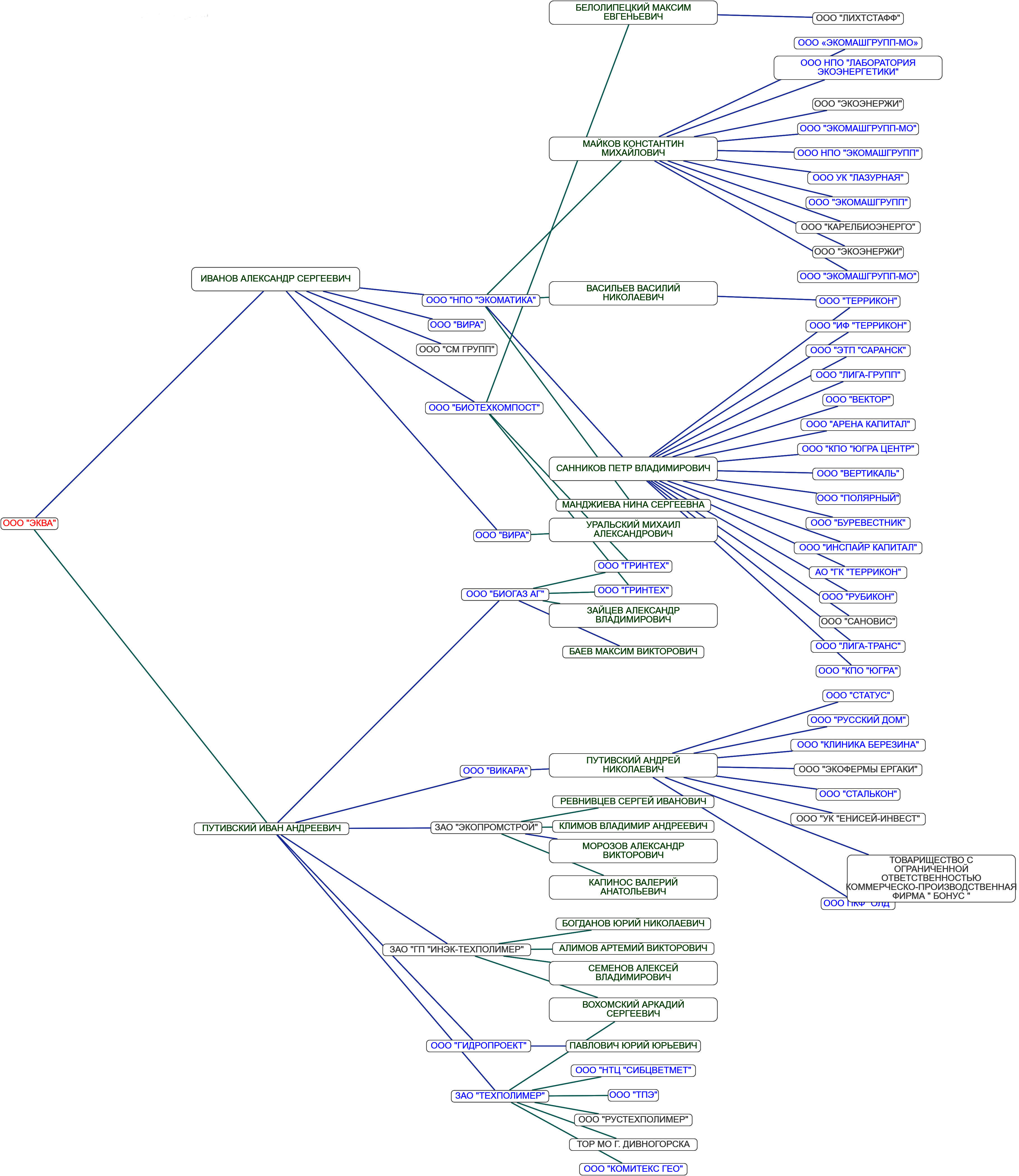 Впрочем, дерево связей, нарисованное нейросетью, демонстрирует, что у скромных с виду учредителей ООО «Эква» масштабные бизнес-связи по всей России. Любопытно, что практически все указанные в схеме компании - это мелкие фирмы с мизерным уставным капиталом, ведущие непонятную деятельность и имеющие неожиданно крупные транши. Как говорится, однако, тенденция. И прекрасный повод силовым структурам присмотреться к схеме повнимательнее.