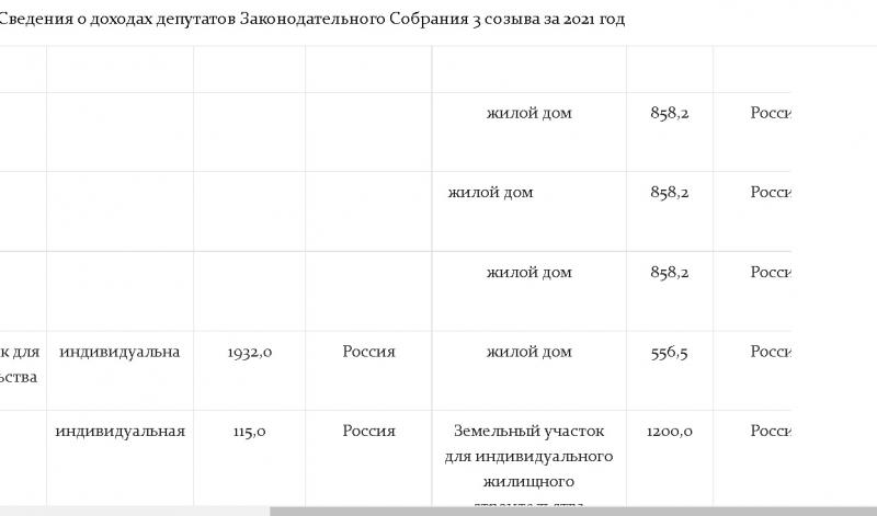 Справа в отчете за 2021-й потерялись столбики с техникой и доходами депутатов (вместе с окончанием слова `Россия`). Правда, в этом же файле ниже список на сайте дан снова, уже с искомыми столбиками, но, во-первых, до него надо сообразить докрутить, а во-вторых, во втором списке царит некий хаос без разделительных линий