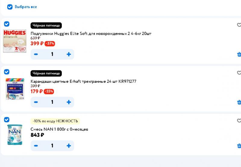 Таким же образом выбираем, скажем, смесь. Тоже надо обычно сразу. Та же история с обещанными сроками.