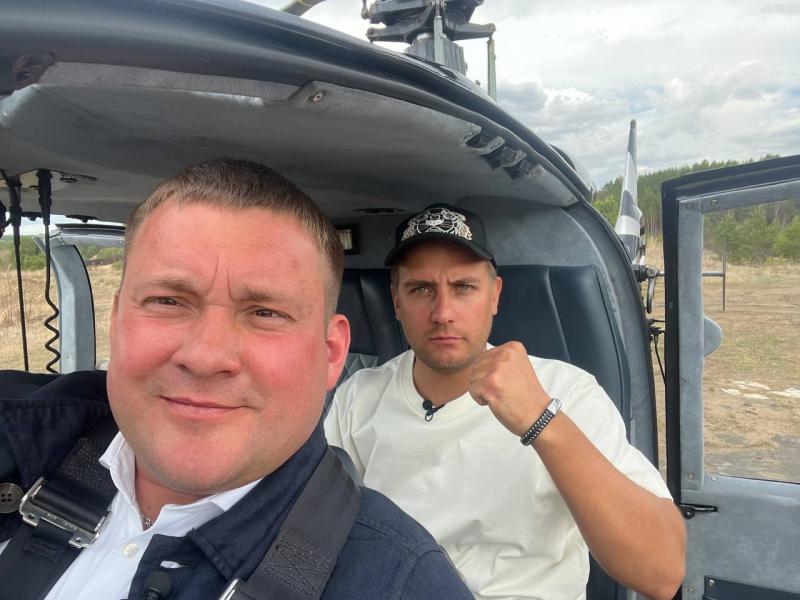 Мэр Николай Хрычов и журналист Павел Степанов в том самом вертолете