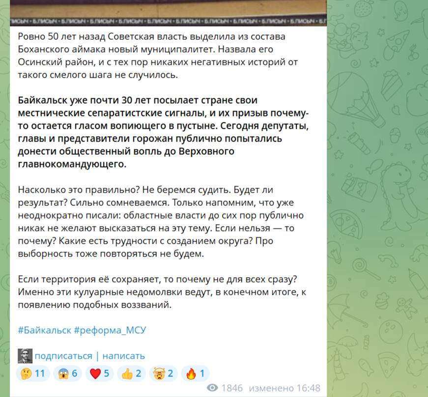 Таким образом, областное правительство оказывается в ловушке собственного замысла. С одной стороны, отступать и идти на создание Байкальского и Нижнеудинского округов — значит признать ошибочность своего плана и потерю лица, а также открыть ящик Пандоры для аналогичных требований из других районов. С другой — продавливать реформу в текущем виде теперь рискованно: протестные настроения растут, а федеральный центр, особенно в текущей политической конъюнктуре, крайне болезненно реагирует на сигналы о массовом игнорировании «мнения народа».