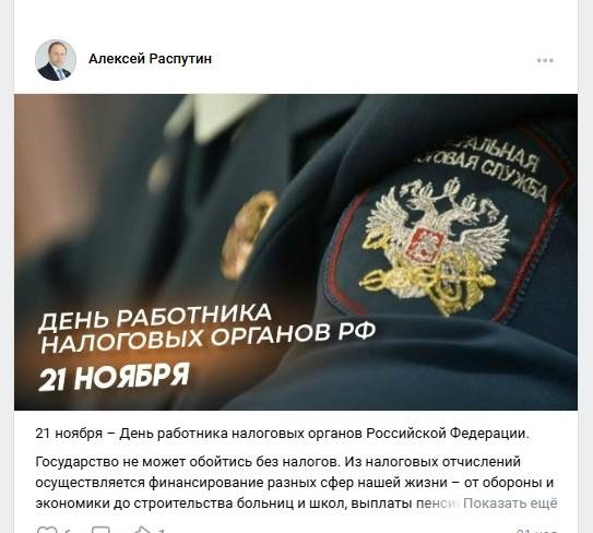 Алексей Распутин, счастливо избежавший в 2025-м жестких санкций за несоответствие доходов и отчета о них, предусмотрительно поздравил работников налоговых органов. Мало кто додумался!